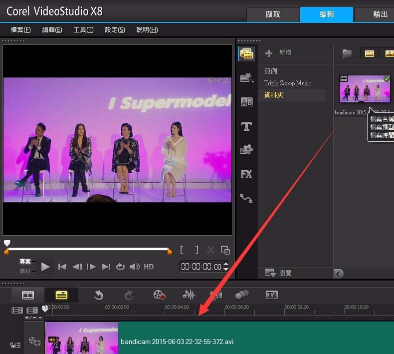 1、双击会声会影X7,打开后,导入一段几分钟的视频。拖拽到下面