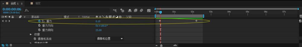 2、下面我们需要制作碎片文字动画。因为碎片是基于一种爆破点上表现的,所以要制作一个爆破点,从左到右的形式表现碎片。在“碎片”效果里调整“作用力1”,设置碎片动画开始发生碎片在5帧的地方,打上关键帧,碎片结束于最后一个文字2秒的地方,再打上关键帧。再设置“碎片”-“物理学”-“重力”里的“重力”动画,关键帧同碎片效果一样,第一个关键帧“重力参数”为0,最后一个为5。