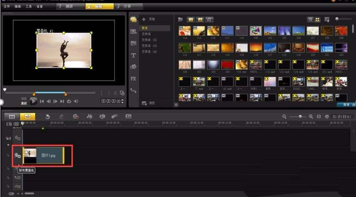 6、将素材从视屏轨拉到覆叠轨中,在视频的四周就出现了可以控制大小的边框。