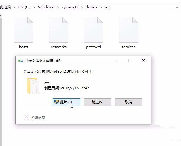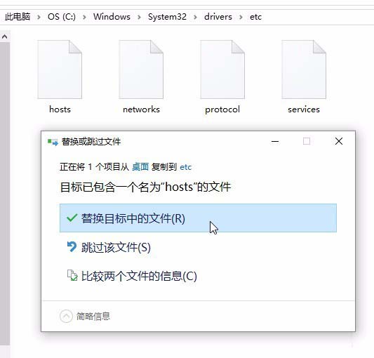 4、将修改后的hosts文件,复制,粘贴并替换掉C:\Windows\System32\drivers\etc目录下的原文件,360会拦截,请放行,具体的看下面的截图