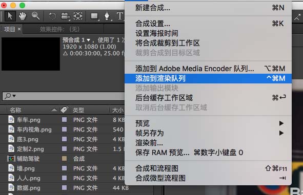 2、选择合成——添加渲染队列(或者 control+M)