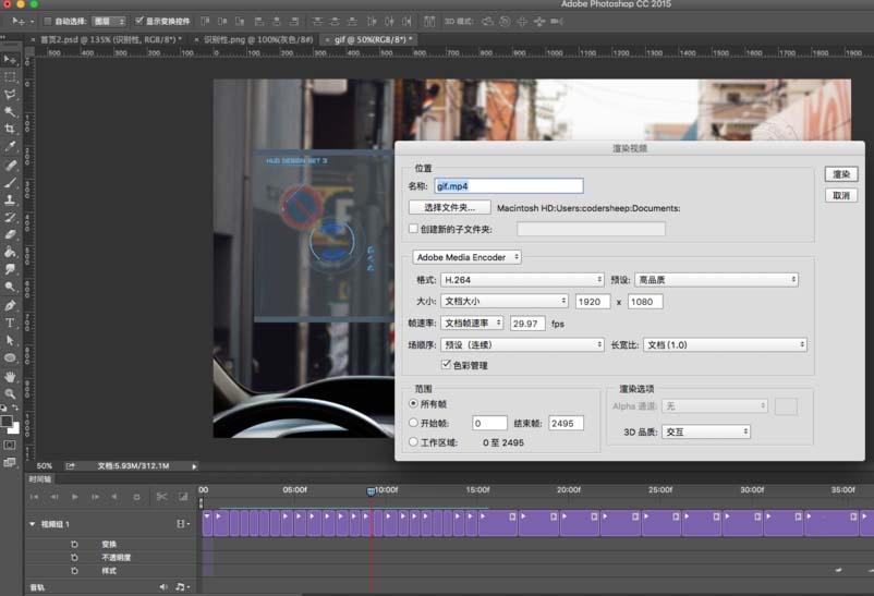 4、选择photoshop序列渲染得出序列图