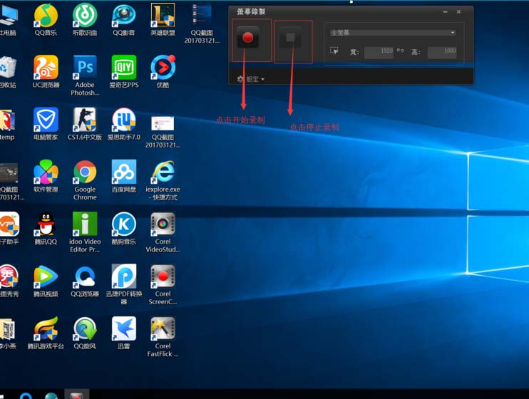 3、我们双击 打开屏幕捕捉,会跳出来一个框覆盖整个屏幕,可以用鼠标调节大小控制录屏范围,调整好以后,点击开始录制。如图
