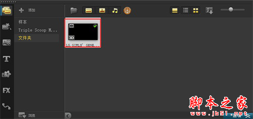 5、媒体库中的视频素材缩略图,就带有3D文件标记了,如图4所示。