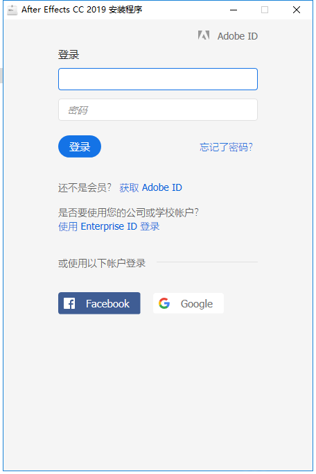 2、我们打开安装包的文件,找到里面的set-up启动程序,我们双击就开始进行安装软件,双击之后会进入安装界面,如果第一次安装的同学,一定是要登录Adobe账号的,有就登录,没有就点击获取AdobeID,进行注册一个Adobe账号。然后在登录即可。