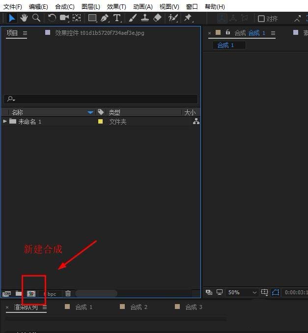 1、打开AE,点击红框中的图标新建合成