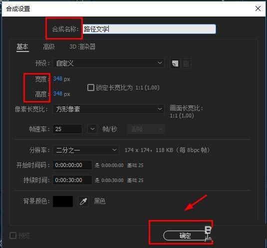 2、设置好宽高和帧速率,文件名等参数,点击确定。
