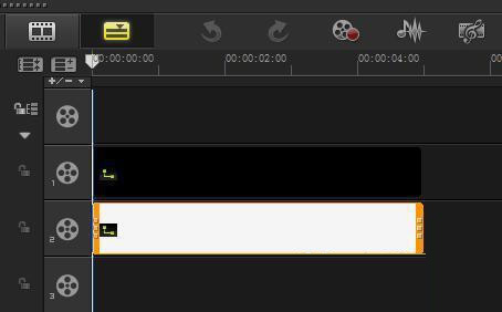 1、制作这个效果最重要的是在会声会影视频编辑软件中制作出视频遮罩,拿上面的倾斜运动的遮罩来说。首先打开会声会影x9,在覆叠轨1上放一个黑色色块,调整到屏幕大小。在覆叠轨2上放一个白色色块;