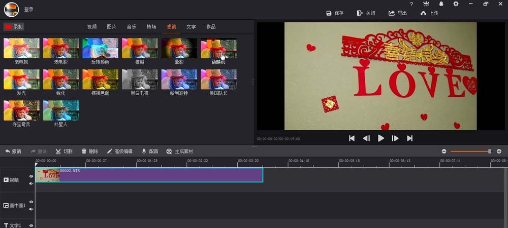 1、首先就是在滤镜里面找到放映机效果