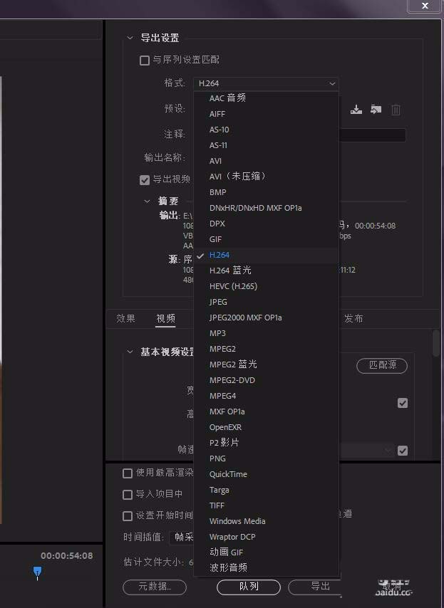 4、视频剪辑好一后,点击文件——导出——媒体,进入导出设置,选择格式,一般选择MP4格式,也就是H.264格式,导出来后就可以上传抖音啦