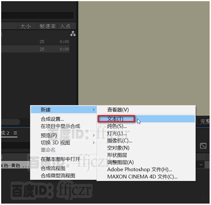 2、在合成层中添加一个纯色层作为文字的背景层。颜色自定。