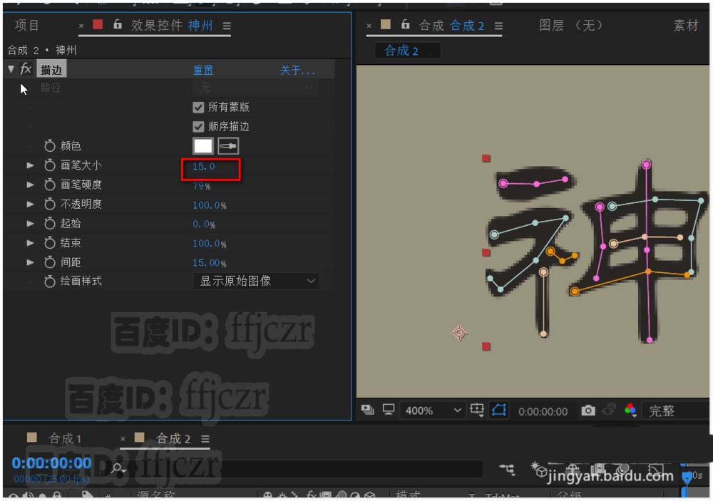 4、选中文本层,给其添加效果、生成列表中描边。