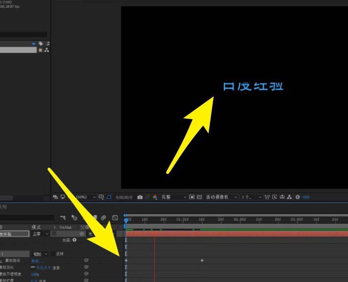 4、打开蒙版路径。将时间指示线移动到0帧位置,然后将蒙版范围移动到文字内容外。