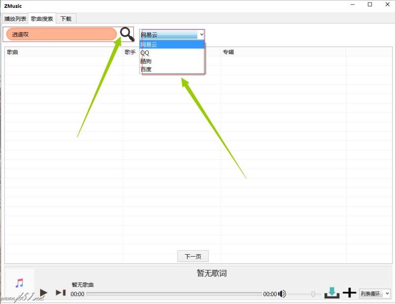 1、打开软件,选择“歌曲搜索”一栏在对应的位置输入想要搜索的歌曲,选择音乐来源