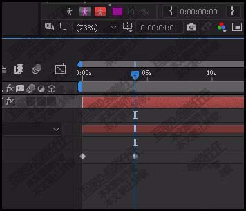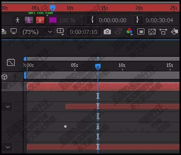 6、写了C字后,放开鼠标,C字会看不见的。鼠标点一下纯色图层,再按U键,调出关键帧。可以看到,刚才写字,软件已自动帮我们打上了关键帧。