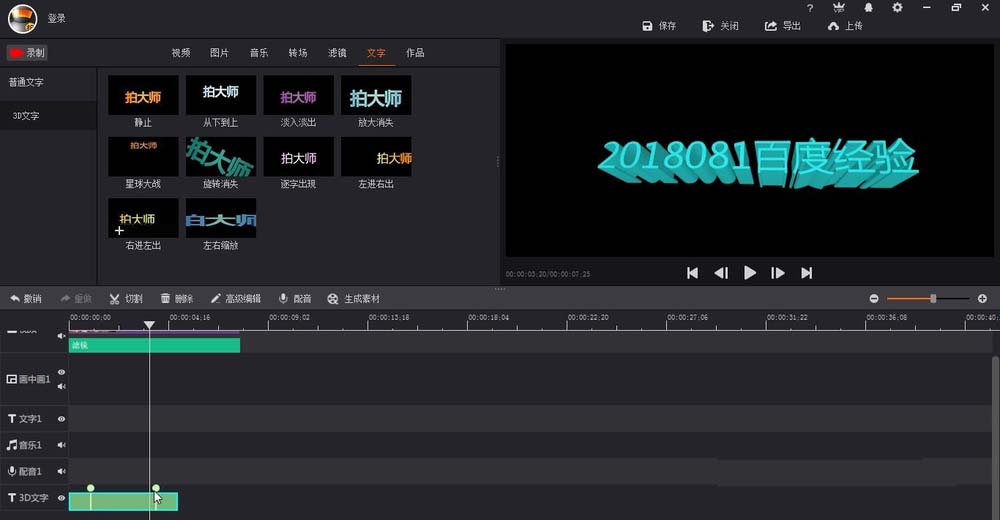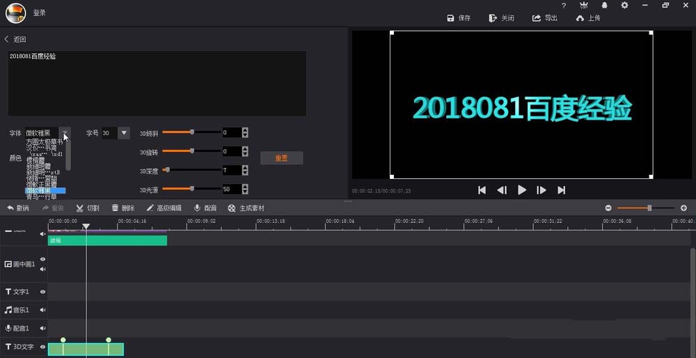 2、在3D文字当中,我们找到-旋转消失