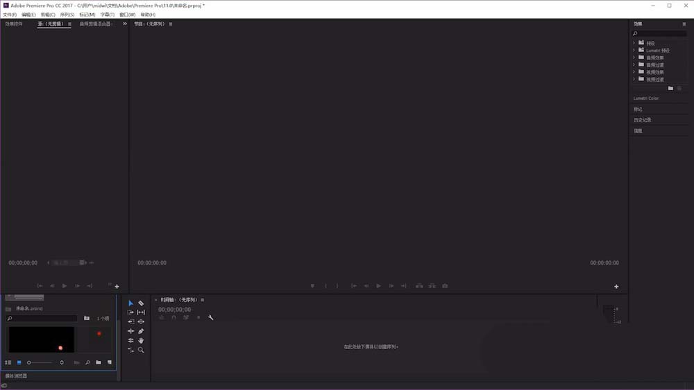 1、首先我们打开pr软件,并新建一个合成。