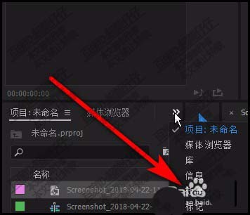 2、再打开效果面板,有些朋友可能不知如何打开效果面板,鼠标放在项目面板右上角这个按钮