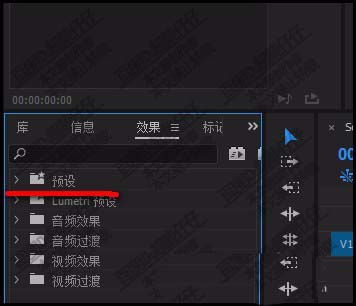 4、打开效果面板后,这里会显示着多个文件夹,效果文件夹,我们点开第一个:预设