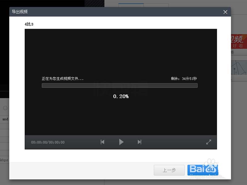 6、执行开始导出命令,在填写视频信息对话框中输入名称为4比3,接着点击下一步并进行导出。