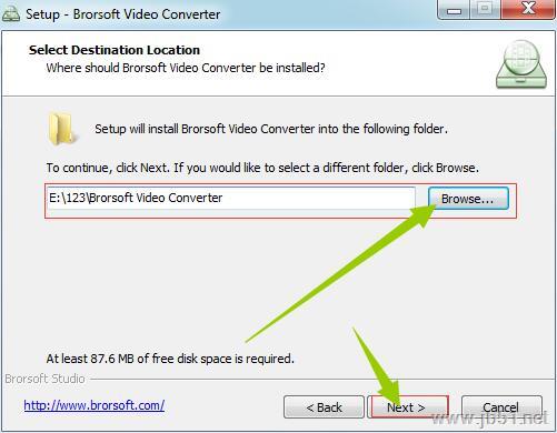 4、选择安装位置,默认位置“C:\Program Files (x86)\Brorsoft\Brorsoft Video Converter”点击Next;