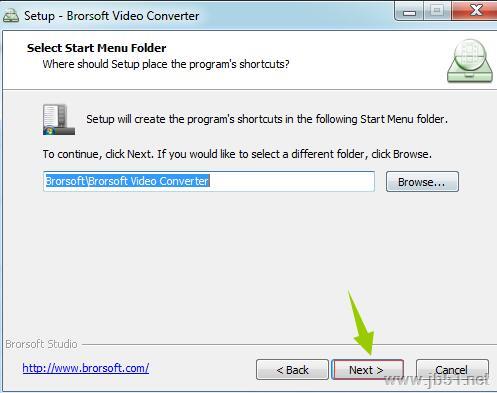 5、选择菜单文件夹,默认文件夹“Brorsoft\Brorsoft Video Converter”,点击Next;