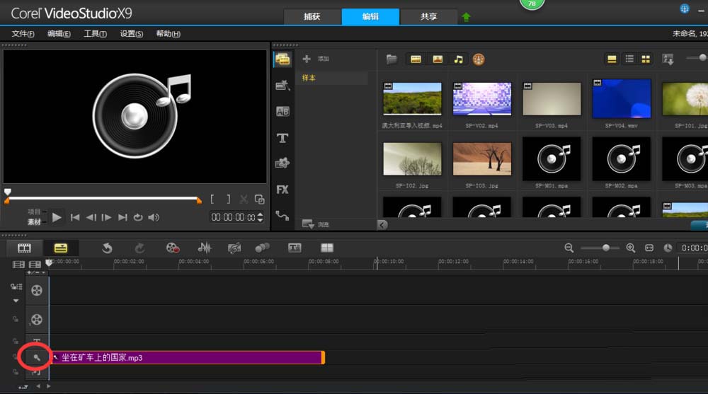1、首先打开会声会影软件。右击声音轨道,插入音频;或者从文件夹中直接把音频文件拖到声音轨道上。按ctrl+o通常找不到音频文件。