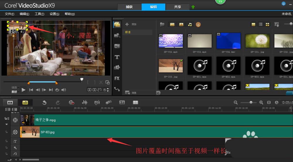 有时候下载一段视频,看是上面有些图案或者文字不喜欢,想将其遮挡住,怎么办呢?用会声会影软件可以达到目的。