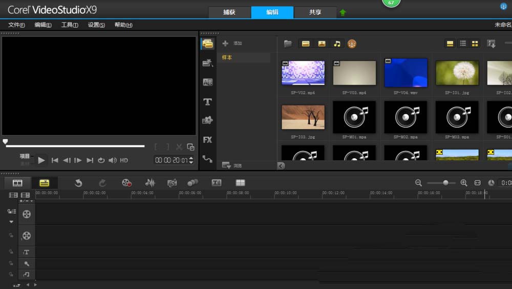1、首先打开会声会影软件,软件处于编辑状态。