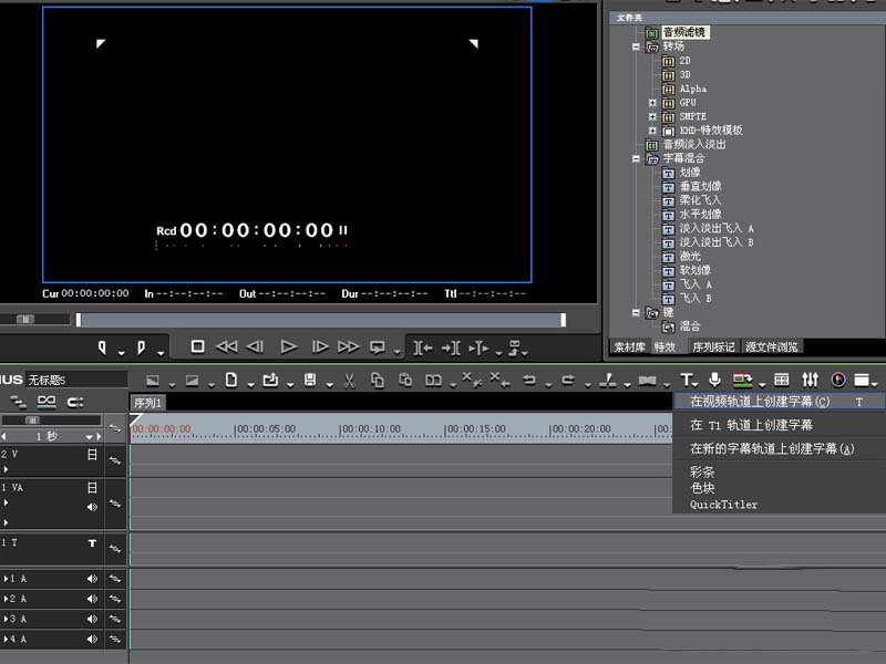 1、首先启动edius6,新建一文档,点击“在视频轨道上创建字幕”,调出quick titler对话框。