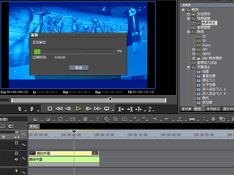 8、按f11键将文件渲染导出即可,这样就设置了变色视频效果。