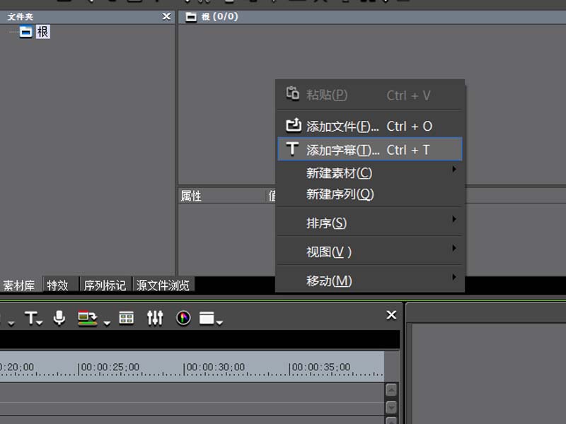 1、首先启动edius6,接着进入主界面,右键单击素材库,从中选择添加字幕选项。