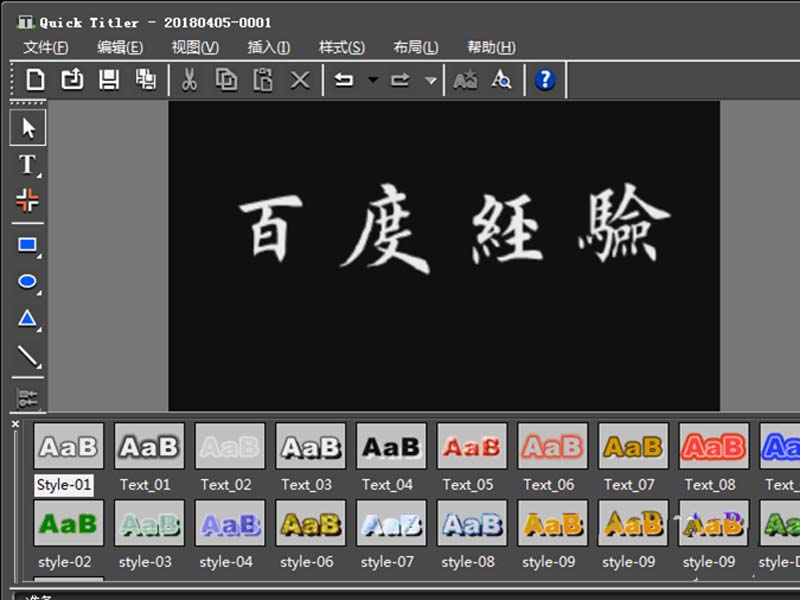 2、在quick titler对话框中,输入文字内容,设置字体为田英章毛笔楷书,字号为300.