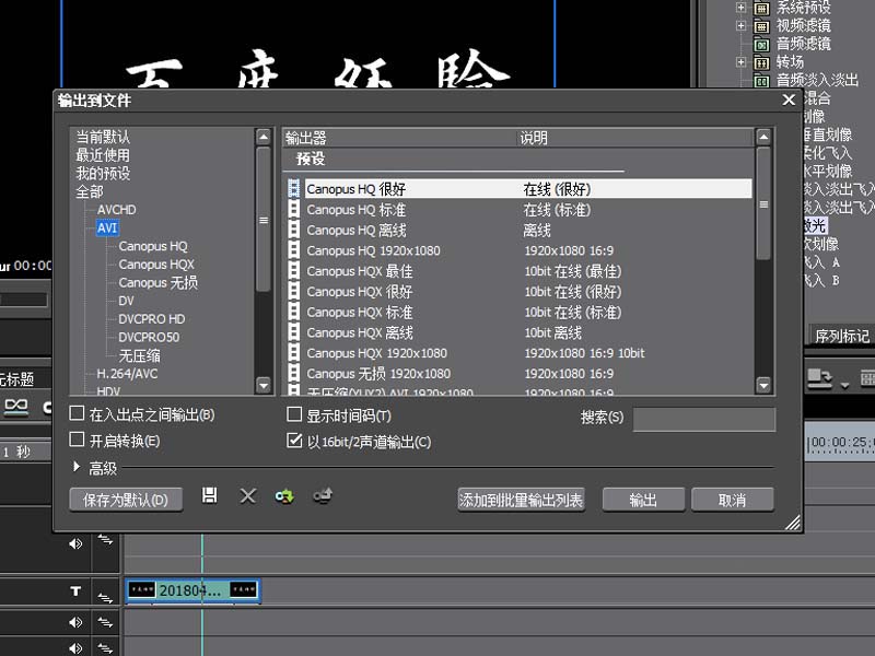 5、执行文件-输出-输出到文件命令,从弹出的对话框选择avi格式。