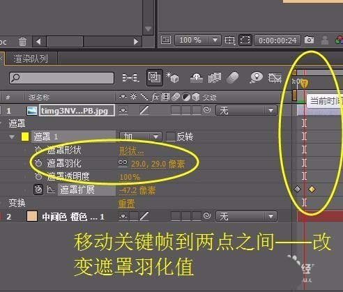 7、激活遮罩扩展——移动关键帧——再次变化一下遮罩扩展的数据即可;