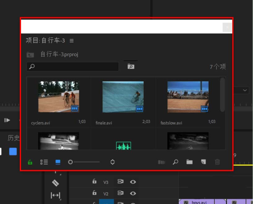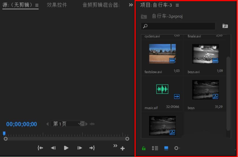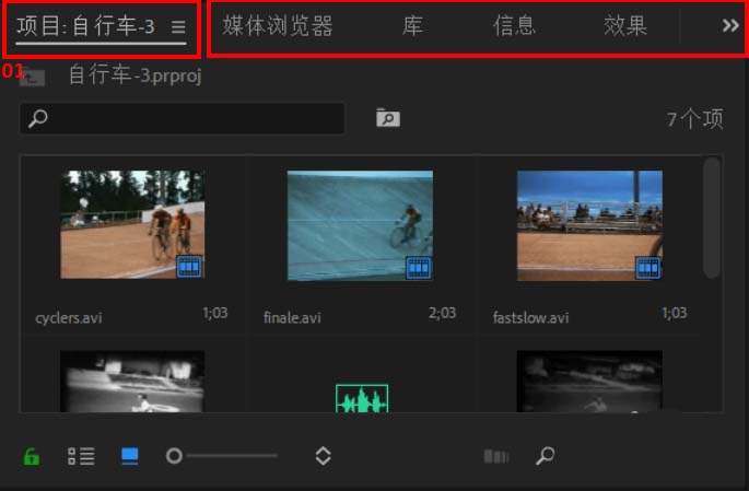 注意:此时“项目”(浮动面板)是悬浮在其他面板之上。在剪辑的过程中,大家可以将面板放置到任何一个地方。