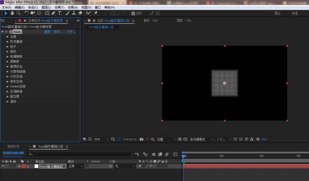 3、选中粒子层添加Form插件;可以看到Form粒子插件的默认状态;