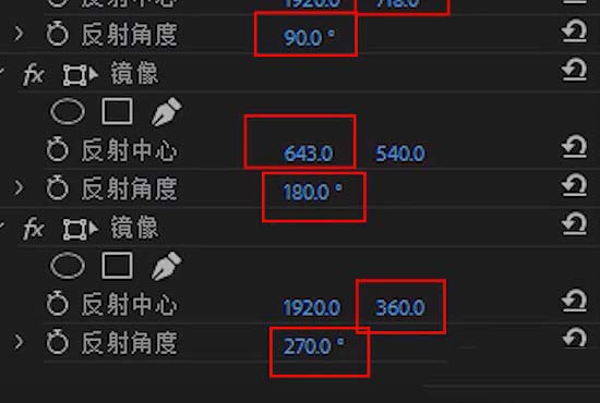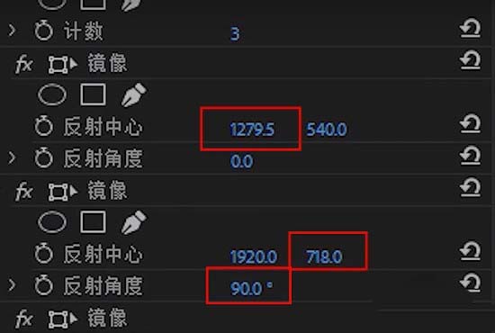 6、接着为调整图层添加4个镜像滤镜,其参数可以参考下图所示的数值。