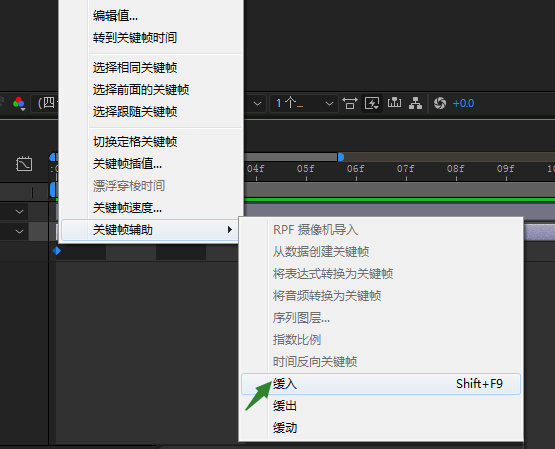 6、在第15帧的时候添加下落的关键帧,让它刚好垂落到画面的中央,到这里相机上升下落的过程就设置完成了。为了让它上升下落的过程更加的柔和,我们选中第一个关键帧给它加一个缓入,接下来选择中间的两个关键帧给它加上缓动,再将最后一个关键帧设置为缓出。