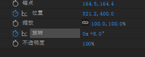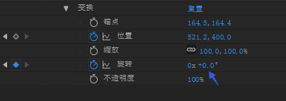 3、接下来设置相机入场的动画,选中相机图层,按快捷键R键,打开它的旋转属性,让它一出场的时候有点倾斜的状态。