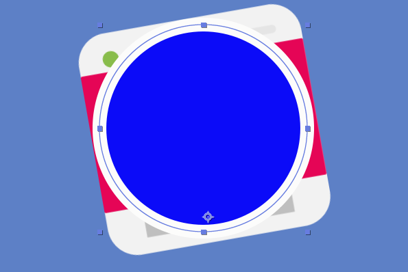 10、最后我们再来设置闪关灯,先把播放帧挪动到相机处于顶部的时间段,然后用椭圆工具在画面当中画一个正圆,将中心点调至到中央的位置,图层命名为闪光,将填充色设置为白色,将不透明度设置为30%,接着按S键打开它的缩放属性,刚开始出现的时候属性值为100%,在5帧以内让它发生一个缩放的过程,再将这两个关键帧设置为缓动关键帧。
