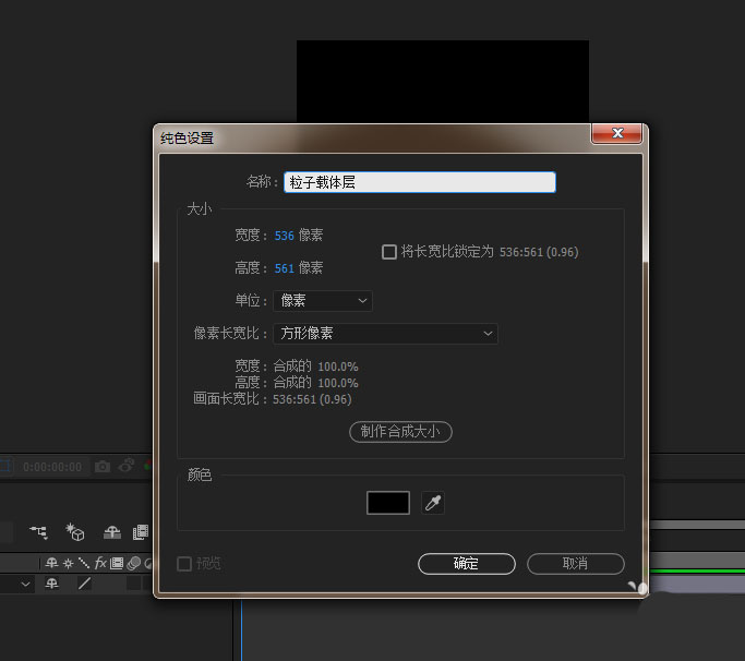 3、ctrl+y新建纯色层,作为粒子载体层出现;