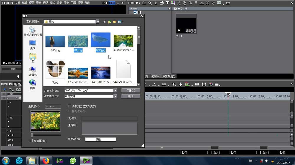 2、进行素材的素材库导入,本文以图片为例进行导入制作