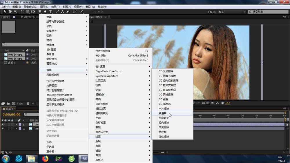 AE中的素材需要添加过渡转场,该怎么制作块溶解转场效果呢?下面我们就来看看详细的教程。