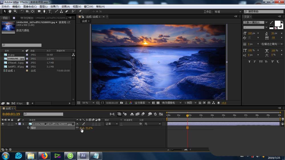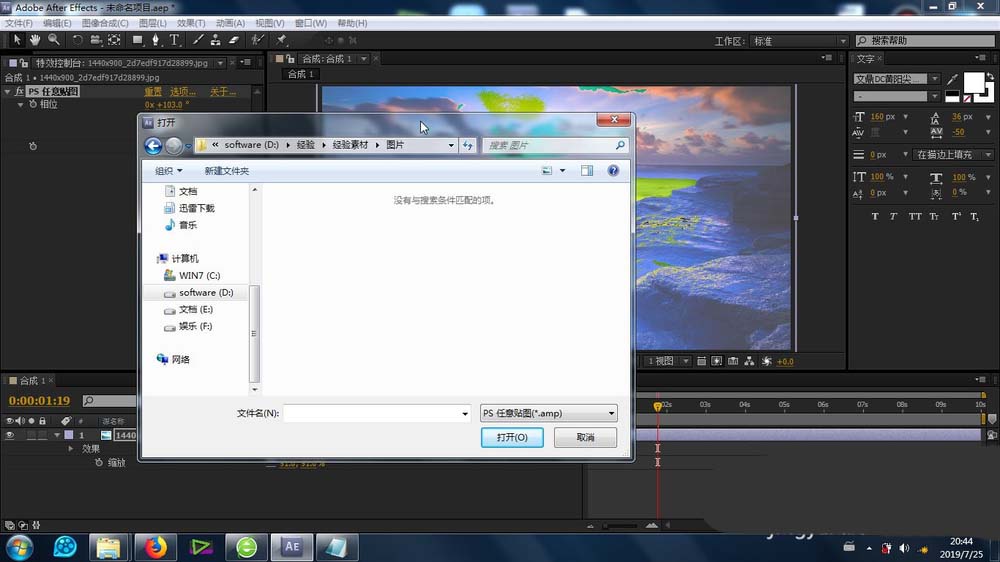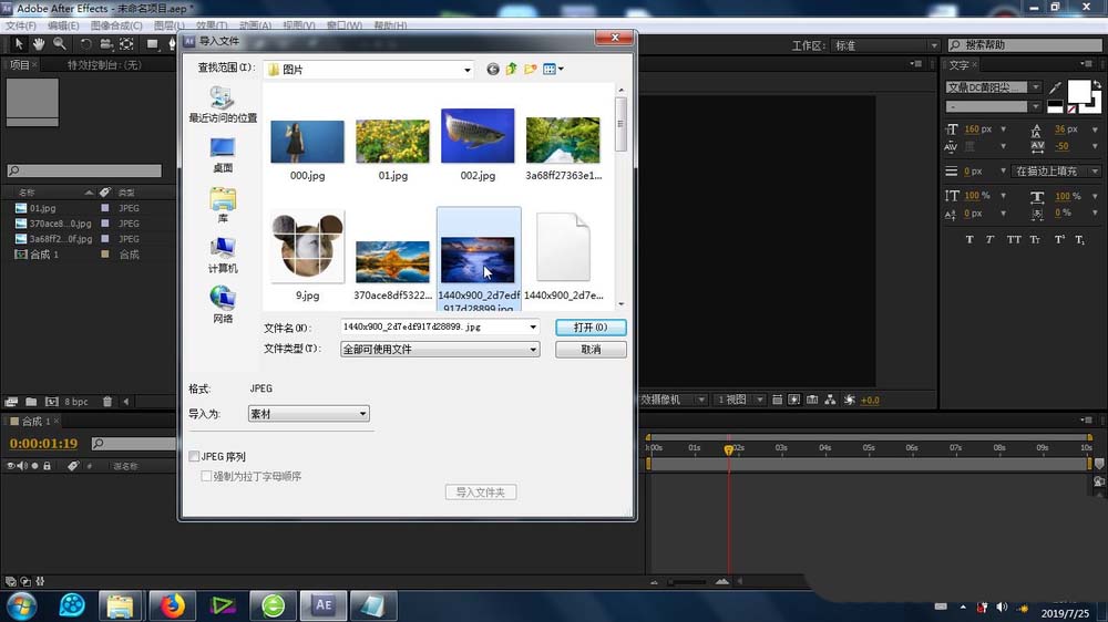 1、首先就是素材的导入,这个导入的方法很简单,不再赘述,将素材库的素材拉至合成里面的时间线上