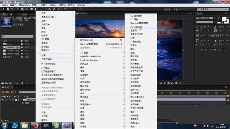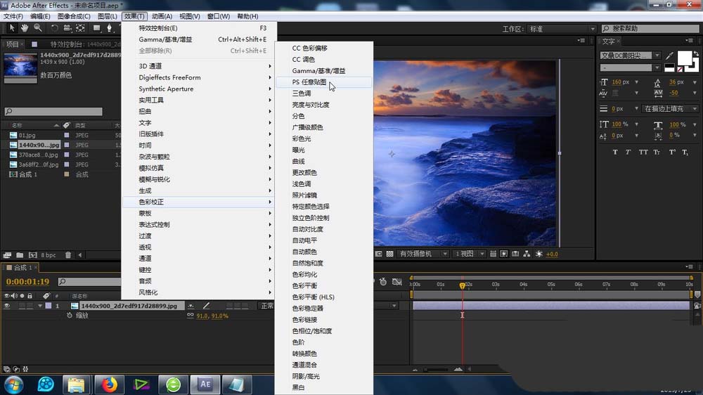 4、这个任意贴图功能效果还可以这样添加:上方的:效果-色彩校正-任意贴图功能