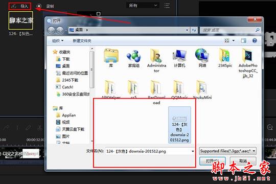 1、在视频编辑王中添加水印一共有两种方法,分别是图片水印与文字水印,下面先来说说添加图片水印的方法,首先需要先进入到视频编辑王软件中,接着导入想要添加水印的视频文件与水印图片,点击“导入”选型,接着在打开界面进行选中并添加即可,如下图所示: