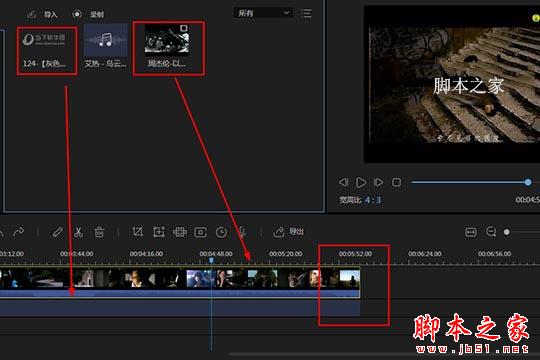 2、首先需要先将视频文件导入到下方时间轴的视频中,接着将图片水印拖动到下方的画中画中,由于软件默认只显示一段时间的图片,为了避免在播放视频时出现水印突然不见的情况,所以需要将视频与图片水印的开始与结束时间进行同步,如下图所示: