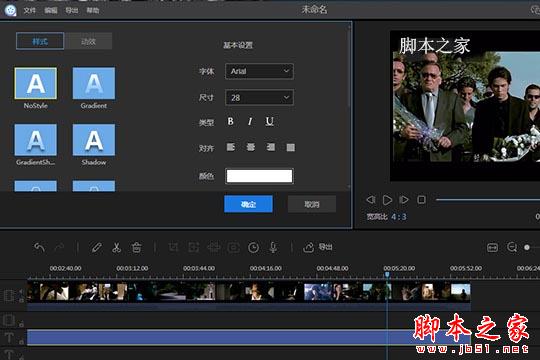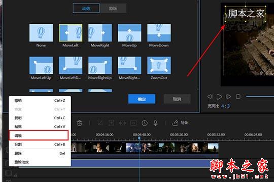3、接着在时间轴中双击水印或点击其中的“编辑”选项进行水印的设置,大家可以在动态中选择水印的出现方法,所以这里选择默认的“None”即可,最后只需要在右边的播放窗口调整水印的位置与大小即可,如下图所示: