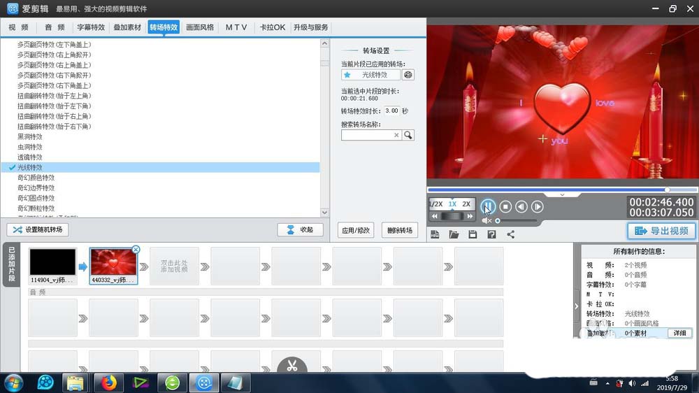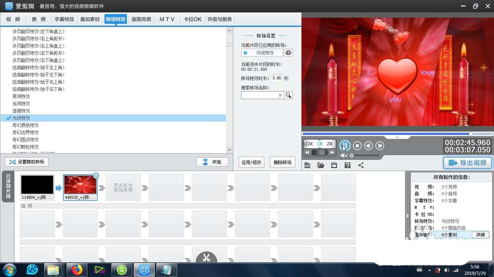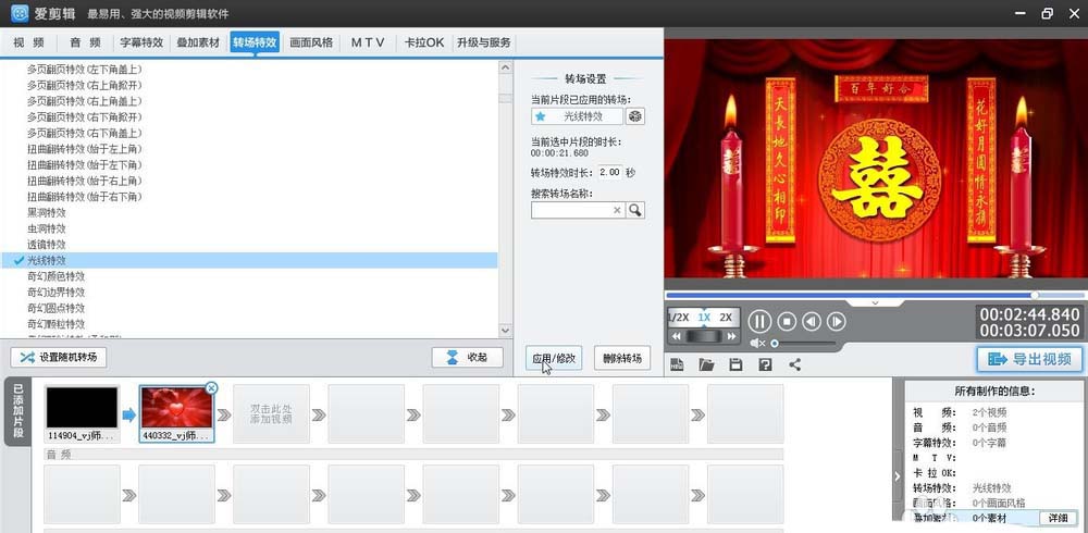 以上就是爱剪辑给视频添加光线转场特效的教程,希望大家喜欢,请继续关注脚本之家。
